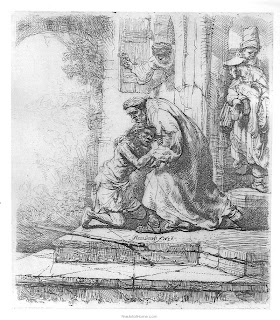 Je ne comprenais pas, et je comprenais d’autant moins, qu’intimement, j’avais reçu le pardon du Père, moi le fils prodigue, car il faut que je le dise : c’était en plein Carême (catholique et même orthodoxe ! J'ai vérifié il n'y avait que 4 jours d'écart cette année-là) et j’avais quarante ans !!! Quarante ans d'errance dans le désert en quête de la Terre promise. Et moi je ne savais plus, depuis belle lurette, ce que c’était que le Carême et j’ignorai même que nous étions dans cette période liturgique… Mais je venais de lire la parabole du Fils prodigue et je ne comprenais pas pourquoi je n’avais pas droit à la fête du repas du Seigneur, comme dans l’Evangile. Pour moi l’église visible ne pouvait que ratifier ce que m’avait offert si clairement et si généreusement le Ciel invisible.